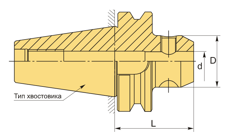 Конус по стандарту MAS403 BT50. Внутреннее отверстие диаметром 6 мм предназначено для установки инструментов с цилиндрическим хвостовиком, оборудованным одной продольной лыской (хвостовики типа Weldon), в соответствии со стандартами DIN 1835-B и DIN 6535-HB.