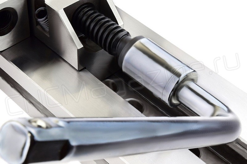 Тиски изготовлены из высококачественной стали. Рабочая поверхность закалена и отшлифована с высокой степенью точности. Твердость рабочих поверхностей достигает HRC58-62. Тиски применяются для точной обработки деталей на фрезерных, шлифовальных и других станках. Обладают высокой силой зажима, что позволяет надежно закрепить заготовку.